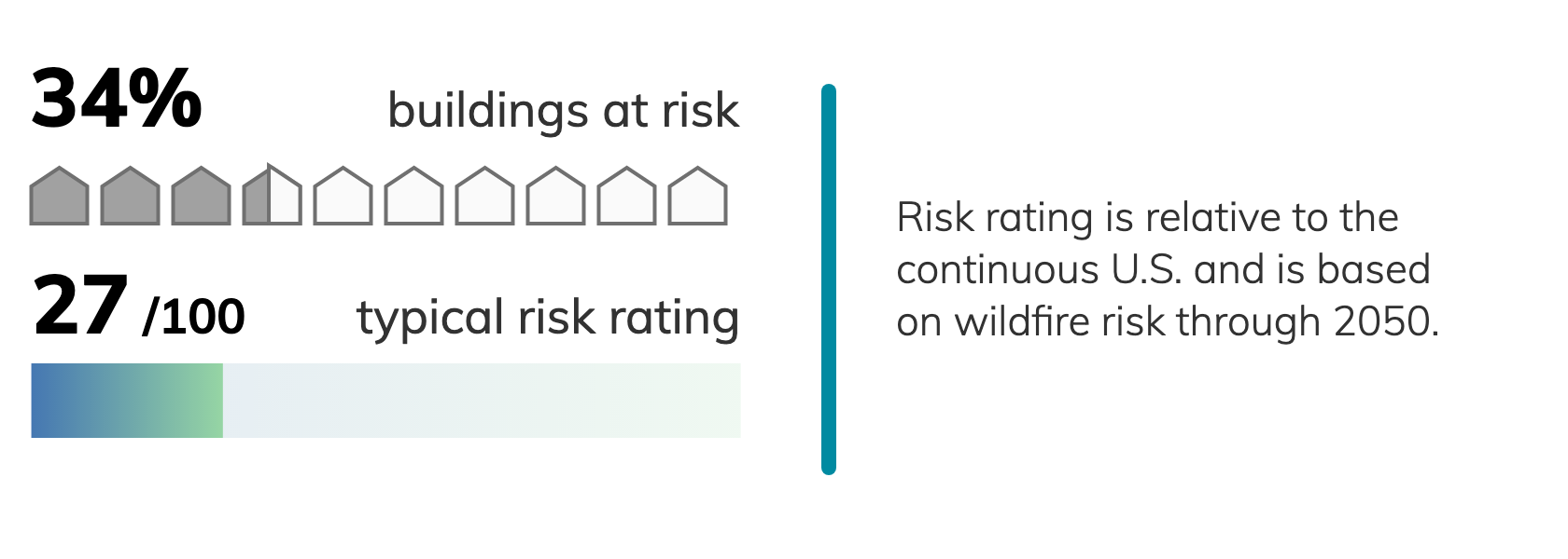 Of 99 census tracts in Tuscaloosa, AL, there are 99 where more than a quarter of buildings have significant fire risk, and 99 where more than half of buildings have significant fire risk. Property owners can take steps to mitigate their risks from wildfires.Fire risk depends on proximity to vegation: densely developed urban areas have a much lower risk of burning than areas adjacent to wildland. Climate change increases risks from wildfire by creating hotter, drier conditions for fires to spread. ClimateCheck ratings of fire risk are based on projected weather conditions and U.S. Forest Service models simulating fire behavior.