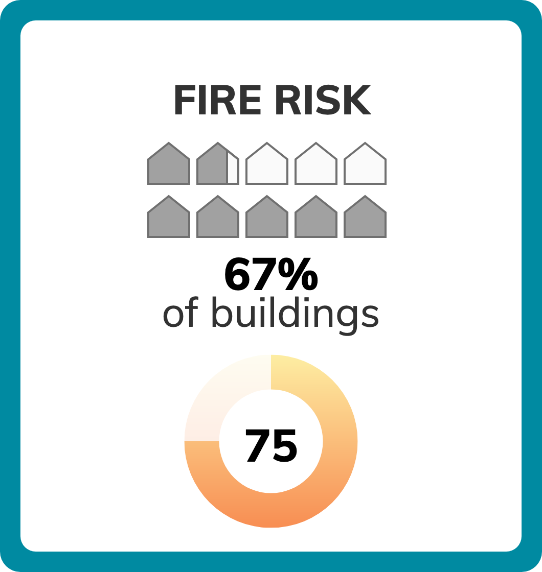 Of 81 census tracts in Indio, CA, there are 72 where more than a quarter of buildings have significant fire risk, and 55 where more than half of buildings have significant fire risk. Property owners can take steps to mitigate their risks from wildfires.Fire risk depends on proximity to vegation: densely developed urban areas have a much lower risk of burning than areas adjacent to wildland. Climate change increases risks from wildfire by creating hotter, drier conditions for fires to spread. ClimateCheck ratings of fire risk are based on projected weather conditions and U.S. Forest Service models simulating fire behavior.