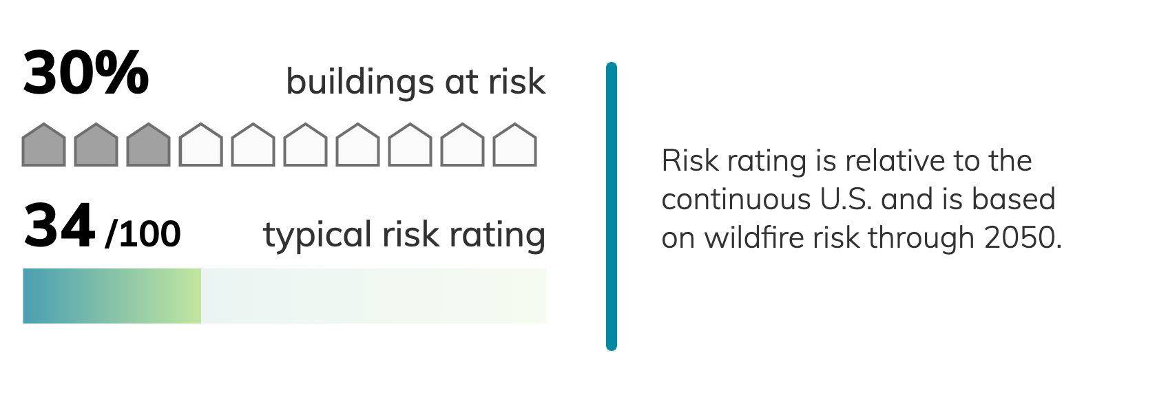 Of 1983 census tracts in Los Angeles, CA, there are 438 where more than a quarter of buildings have significant fire risk, and 366 where more than half of buildings have significant fire risk. Property owners can take steps to mitigate their risks from wildfires.Fire risk depends on proximity to vegation: densely developed urban areas have a much lower risk of burning than areas adjacent to wildland. Climate change increases risks from wildfire by creating hotter, drier conditions for fires to spread. ClimateCheck ratings of fire risk are based on projected weather conditions and U.S. Forest Service models simulating fire behavior.