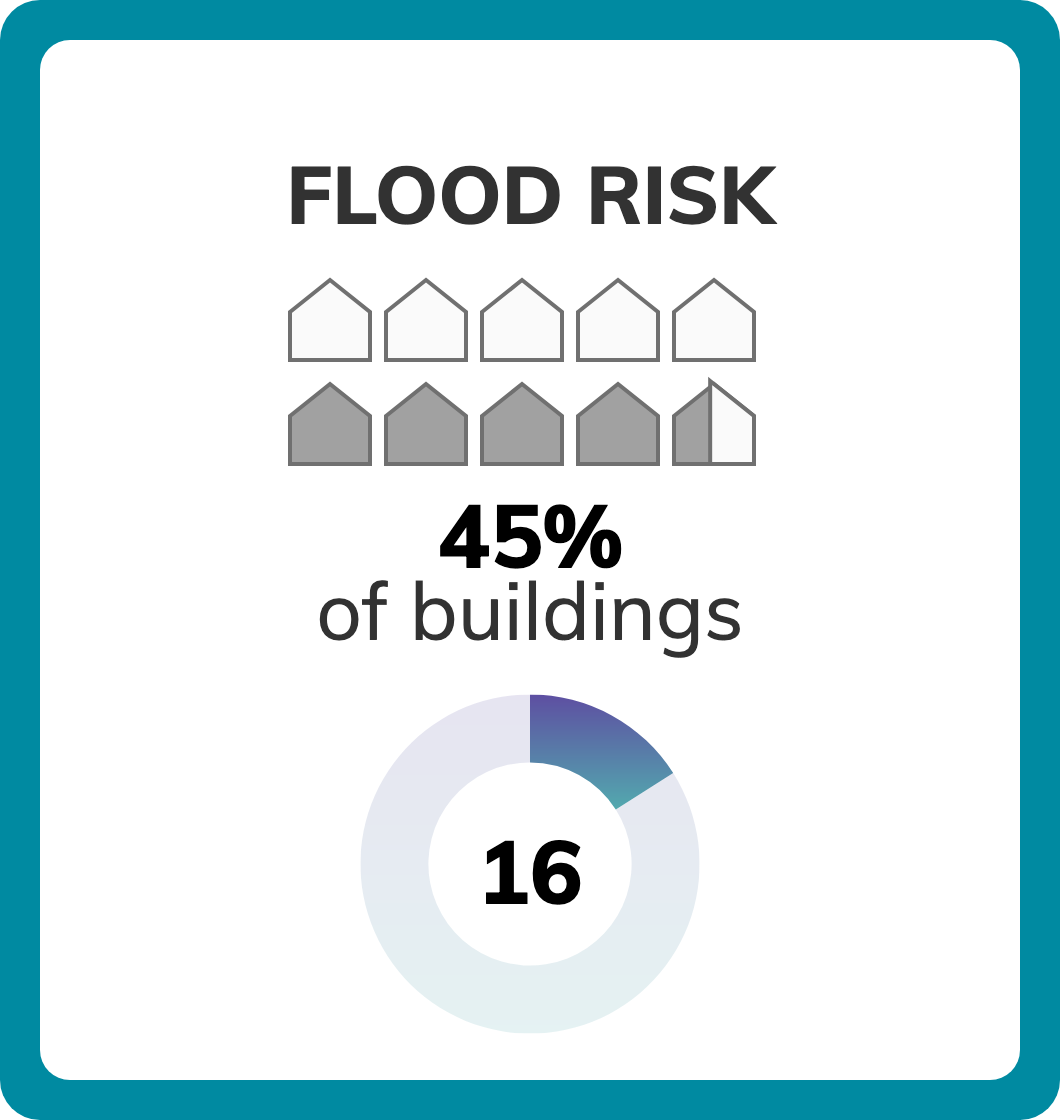 Of 9 census tracts in Newark, CA, there are 5 where more than half of buildings have significant risk from high tide flooding, surface (pluvial) flooding, and riverine (fluvial) flooding. Property owners can check a specific address for flood risk including FEMA flood zone, then take steps to reduce their vulnerability to flooding damage.Climate change is increasing inland and coastal flooding risk due to sea level rise and increasing chances of extreme precipitation. See more information on flooding risk.