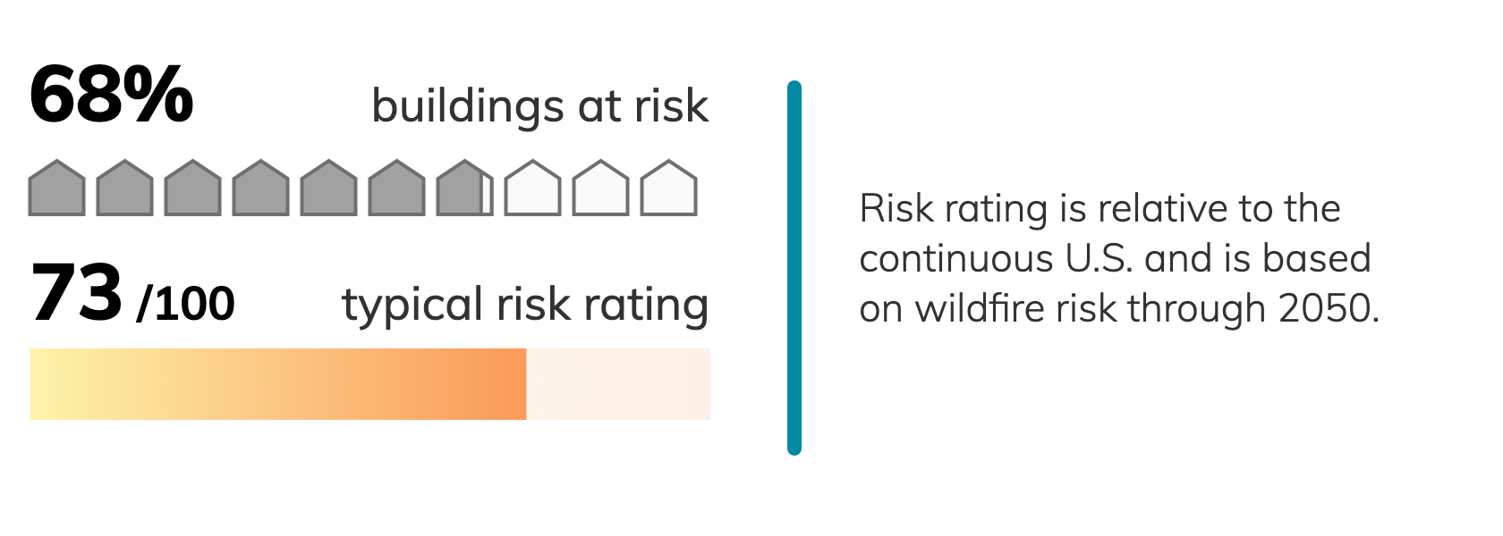 Of 57 census tracts in Palm Desert, CA, there are 52 where more than a quarter of buildings have significant fire risk, and 44 where more than half of buildings have significant fire risk. Property owners can take steps to mitigate their risks from wildfires.Fire risk depends on proximity to vegation: densely developed urban areas have a much lower risk of burning than areas adjacent to wildland. Climate change increases risks from wildfire by creating hotter, drier conditions for fires to spread. ClimateCheck ratings of fire risk are based on projected weather conditions and U.S. Forest Service models simulating fire behavior.