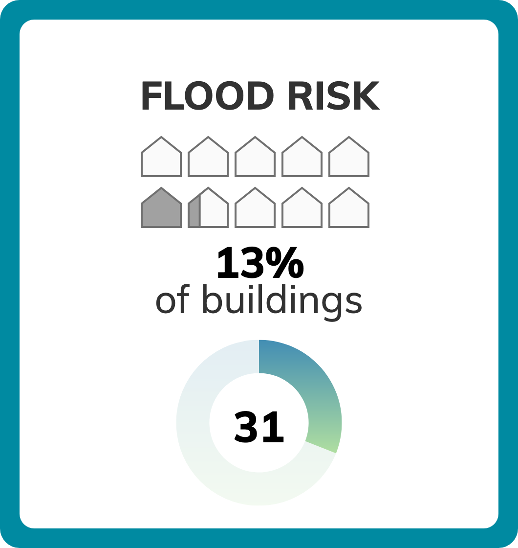 Of 656 census tracts in San Diego, CA, there are 60 where more than half of buildings have significant risk from high tide flooding, surface (pluvial) flooding, and riverine (fluvial) flooding. Property owners can check a specific address for flood risk including FEMA flood zone, then take steps to reduce their vulnerability to flooding damage.Climate change is increasing inland and coastal flooding risk due to sea level rise and increasing chances of extreme precipitation. See more information on flooding risk.