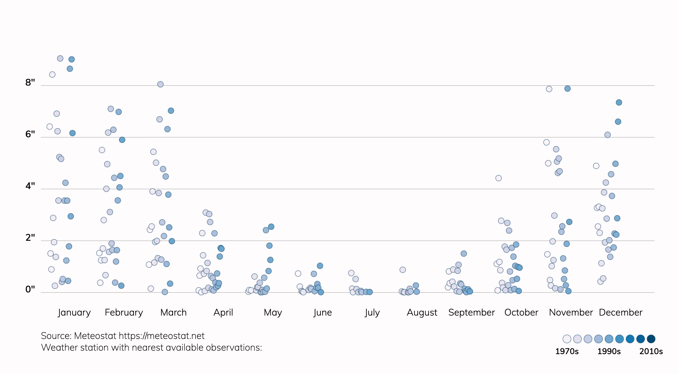 A downpour for San Francisco, CA is a two-day rainfall total over 0.8 inches. Around 1990, about 57.99999999999999% of precipitation fell during these downpours. In 2050, this is projected to be about 61.0%. The annual precipitation in San Francisco, CA is projected to increase from about 22.6" to about 23.2".Extreme precipitation in any form can pose significant risks. Climate change is increasing the potential for extreme rainfall or snowfall because warmer air can hold more water vapor. See more information on storm risk. Property owners can take steps to reduce their risks from extreme precipitation.