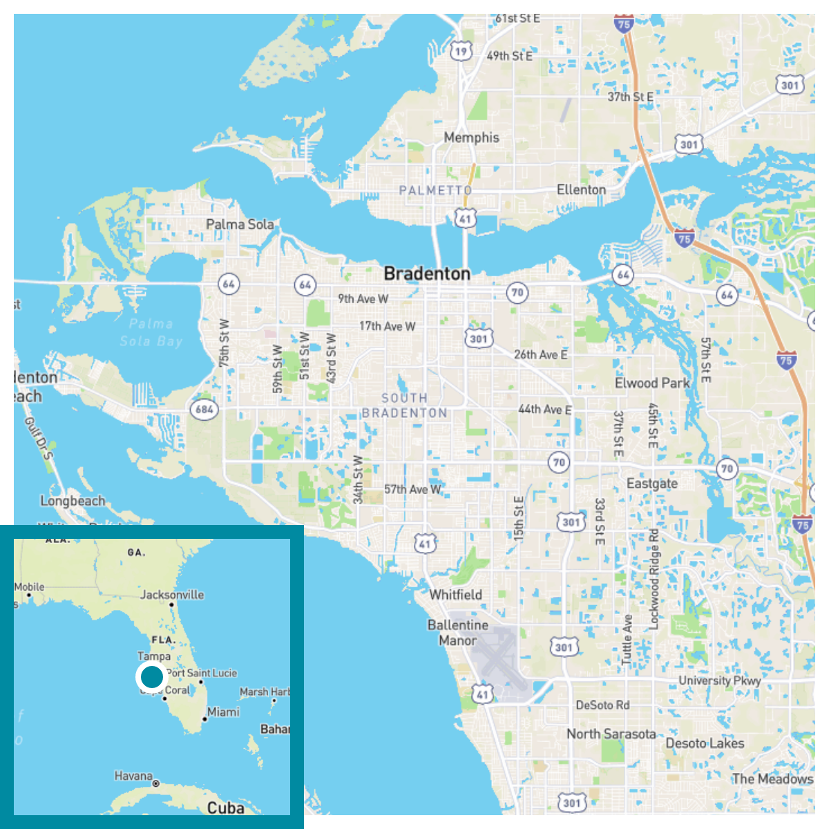 The risks presented on this page reflect modeled averages for Bradenton, FL under one projected emissions scenario and can vary for individual properties. To find out more, check a specific address and request a report describing risks to your property and in your area.