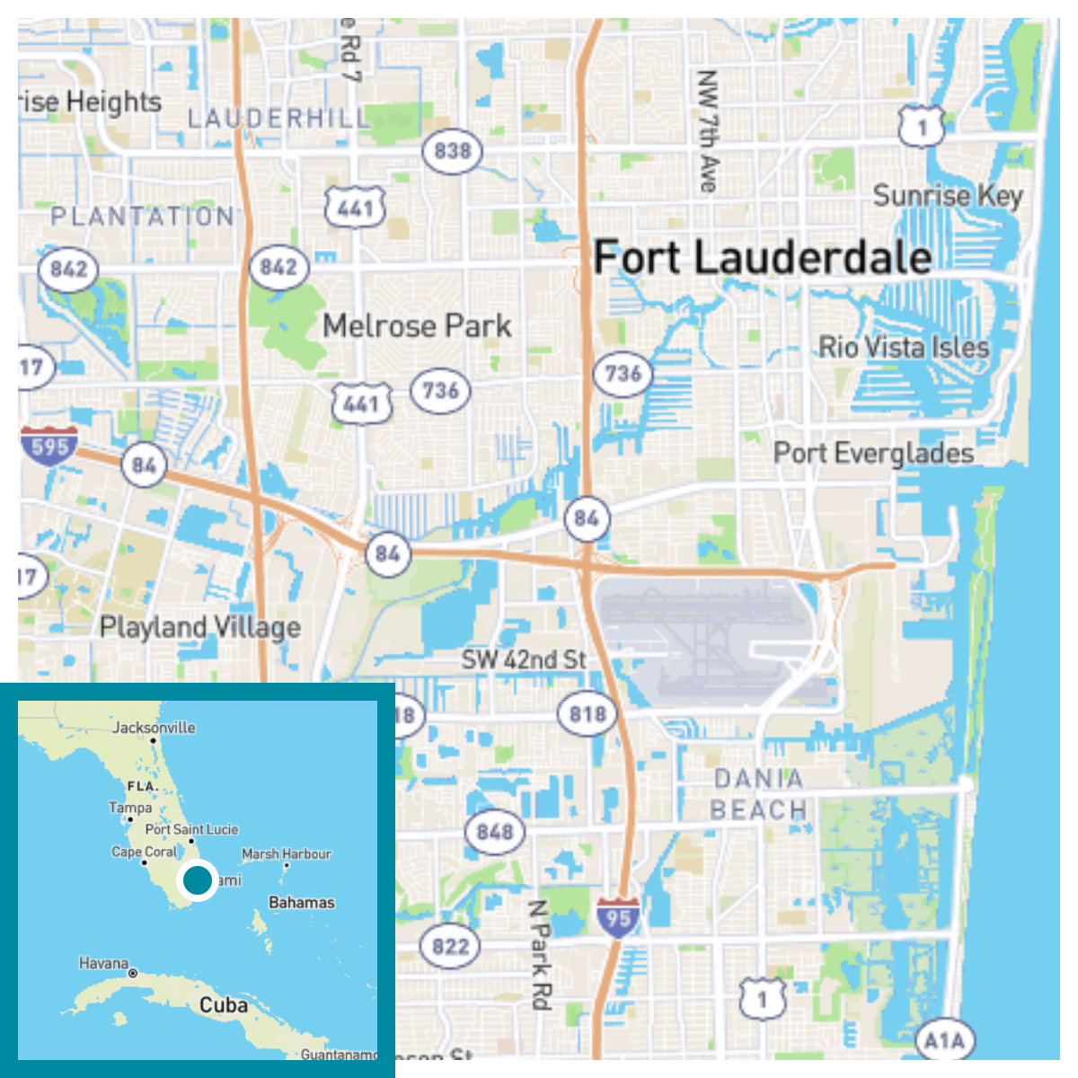 The risks presented on this page reflect modeled averages for Dania Beach, FL under one projected emissions scenario and can vary for individual properties. To find out more, check a specific address and request a report describing risks to your property and in your area.