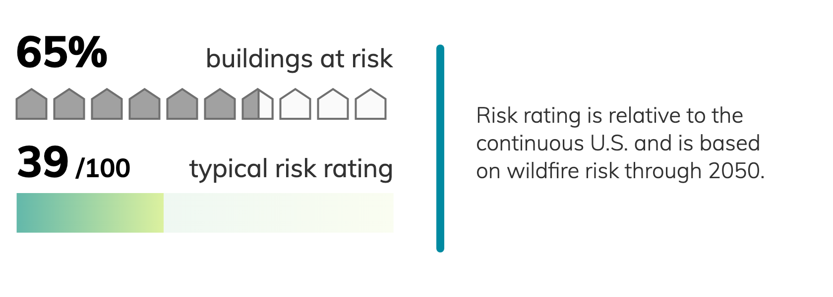 Of 39 census tracts in Four Corners, FL, there are 38 where more than a quarter of buildings have significant fire risk, and 38 where more than half of buildings have significant fire risk. Property owners can take steps to mitigate their risks from wildfires.Fire risk depends on proximity to vegation: densely developed urban areas have a much lower risk of burning than areas adjacent to wildland. Climate change increases risks from wildfire by creating hotter, drier conditions for fires to spread. ClimateCheck ratings of fire risk are based on projected weather conditions and U.S. Forest Service models simulating fire behavior.