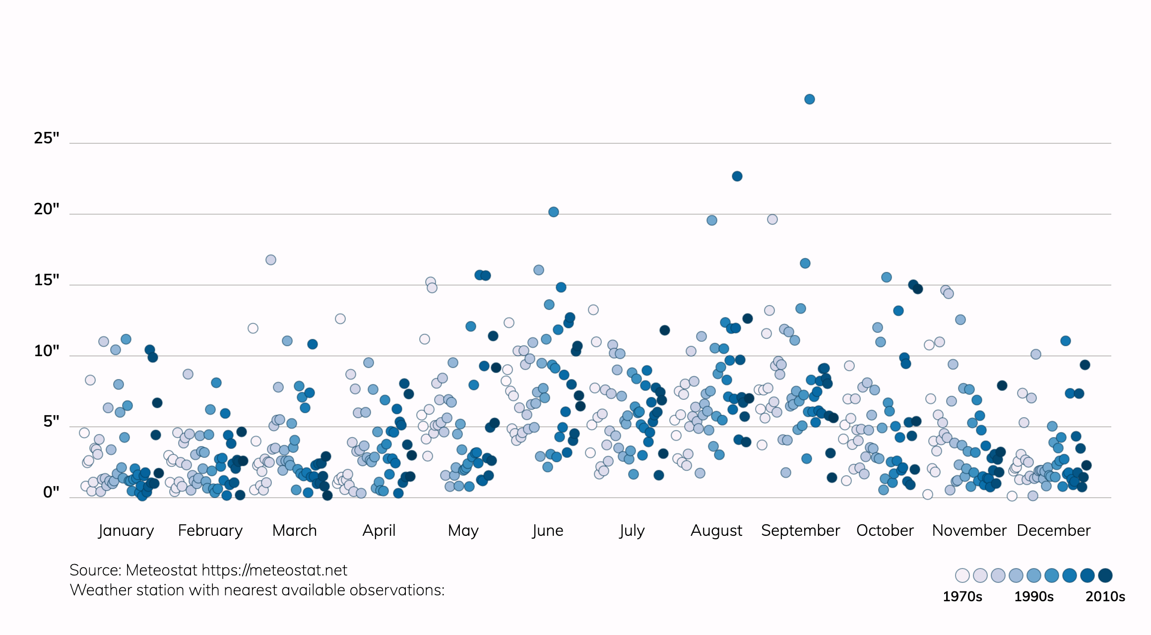 A downpour for Greenacres, FL is a two-day rainfall total over 1.3 inches. Around 1990, about 41.0% of precipitation fell during these downpours. In 2050, this is projected to be about 43.0%. The annual precipitation in Greenacres, FL is projected to decrease from about 56.8" to about 56.3".Extreme precipitation in any form can pose significant risks. Climate change is increasing the potential for extreme rainfall or snowfall because warmer air can hold more water vapor. See more information on storm risk. Property owners can take steps to reduce their risks from extreme precipitation.