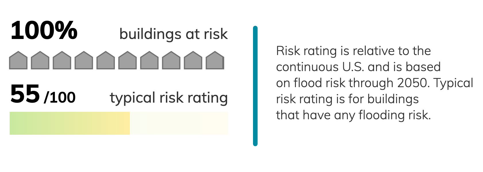 Of 129 census tracts in Hollywood, FL, there are 128 where more than half of buildings have significant risk from storm surge, high tide flooding, surface (pluvial) flooding, and riverine (fluvial) flooding. Property owners can check a specific address for flood risk including FEMA flood zone, then take steps to reduce their vulnerability to flooding damage.Climate change is increasing inland and coastal flooding risk due to sea level rise and increasing chances of extreme precipitation. See more information on flooding risk.