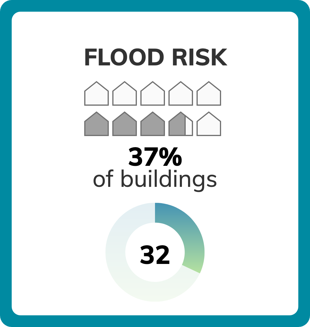 Of 331 census tracts in Jacksonville, FL, there are 91 where more than half of buildings have significant risk from storm surge, high tide flooding, and surface (pluvial) flooding. Property owners can check a specific address for flood risk including FEMA flood zone, then take steps to reduce their vulnerability to flooding damage.Climate change is increasing inland and coastal flooding risk due to sea level rise and increasing chances of extreme precipitation. See more information on flooding risk.