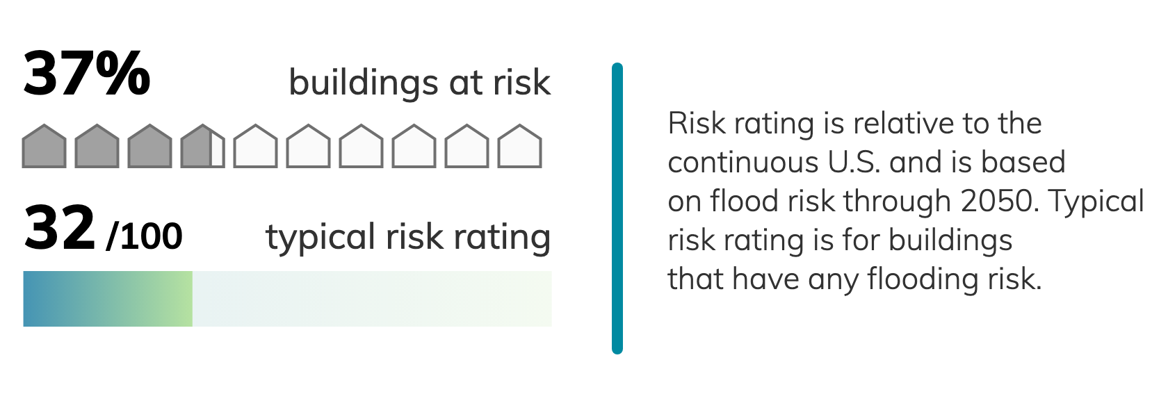 Buildings at risk in Jacksonville average about a 35% chance of a flood about 1.0 feet deep over 30 years.