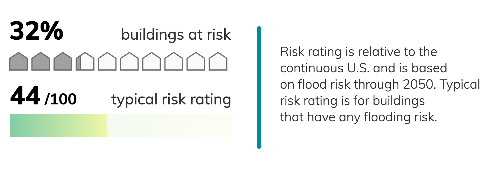 Of 238 census tracts in Albuquerque, NM, there are 44 where more than half of buildings have significant risk from surface (pluvial) flooding and riverine (fluvial) flooding. Property owners can check a specific address for flood risk including FEMA flood zone, then take steps to reduce their vulnerability to flooding damage.Climate change is increasing inland and coastal flooding risk due to sea level rise and increasing chances of extreme precipitation. See more information on flooding risk.