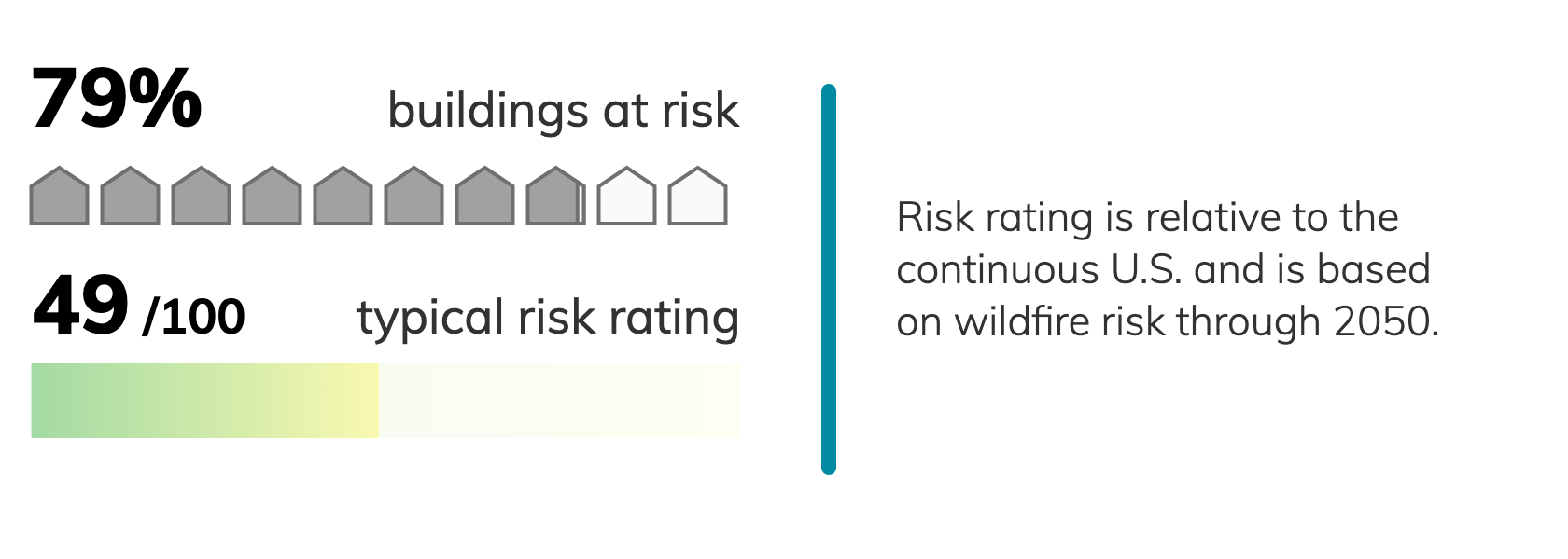 Of 550 census tracts in Oklahoma City, OK, there are 382 where more than a quarter of buildings have significant fire risk, and 361 where more than half of buildings have significant fire risk. Property owners can take steps to mitigate their risks from wildfires.Fire risk depends on proximity to vegation: densely developed urban areas have a much lower risk of burning than areas adjacent to wildland. Climate change increases risks from wildfire by creating hotter, drier conditions for fires to spread. ClimateCheck ratings of fire risk are based on projected weather conditions and U.S. Forest Service models simulating fire behavior.
