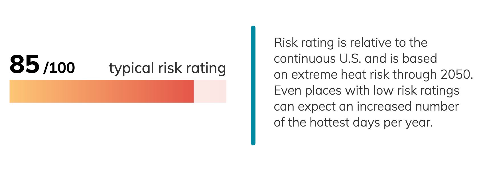 The risks presented on this page reflect modeled averages for Tulsa, OK under one projected emissions scenario and can vary for individual properties. To find out more, check a specific address and request a report describing risks to your property and in your area.