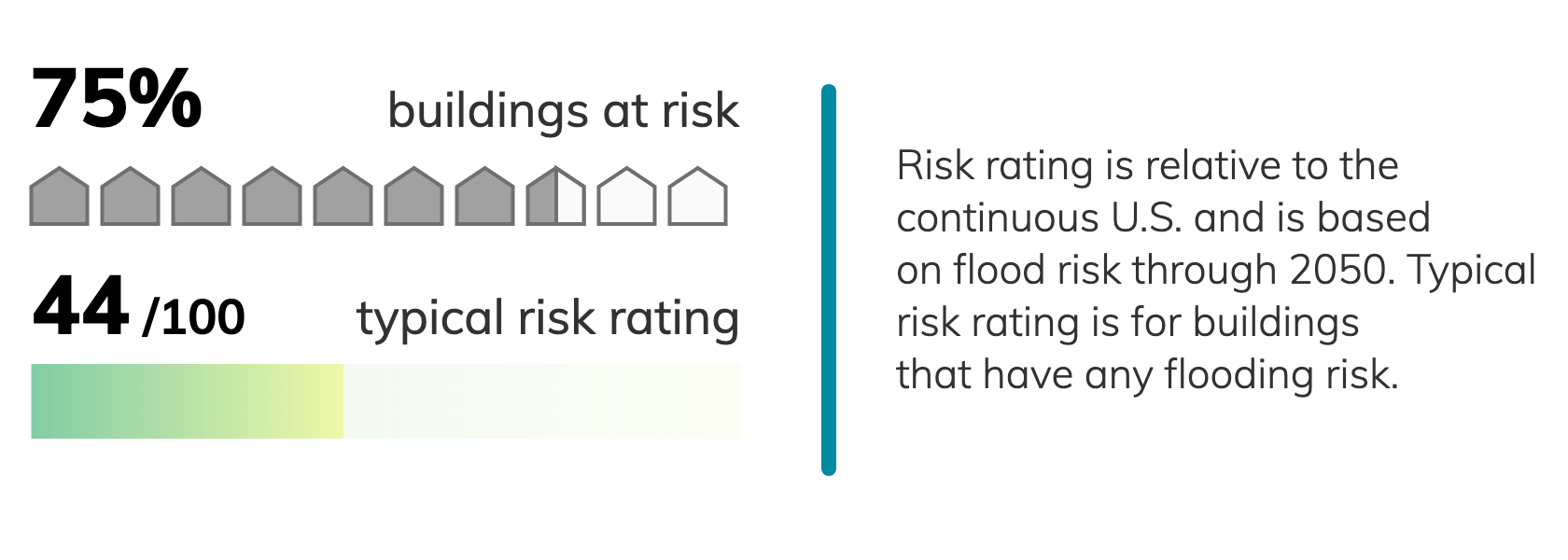 Buildings at risk in Brownsville average about a 54% chance of a flood about 2.3 feet deep over 30 years.