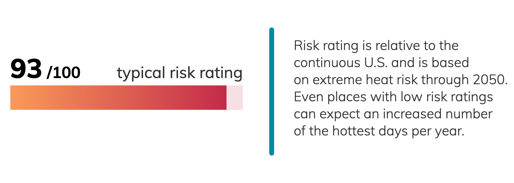 The risks presented on this page reflect modeled averages for McKinney, TX under one projected emissions scenario and can vary for individual properties. To find out more, check a specific address and request a report describing risks to your property and in your area.