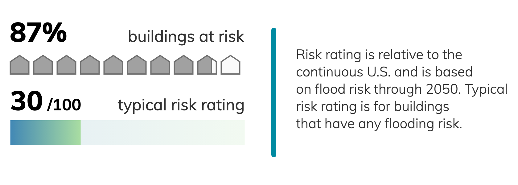 Buildings at risk in Norfolk average about a 82% chance of a flood about 1.0 feet deep over 30 years.