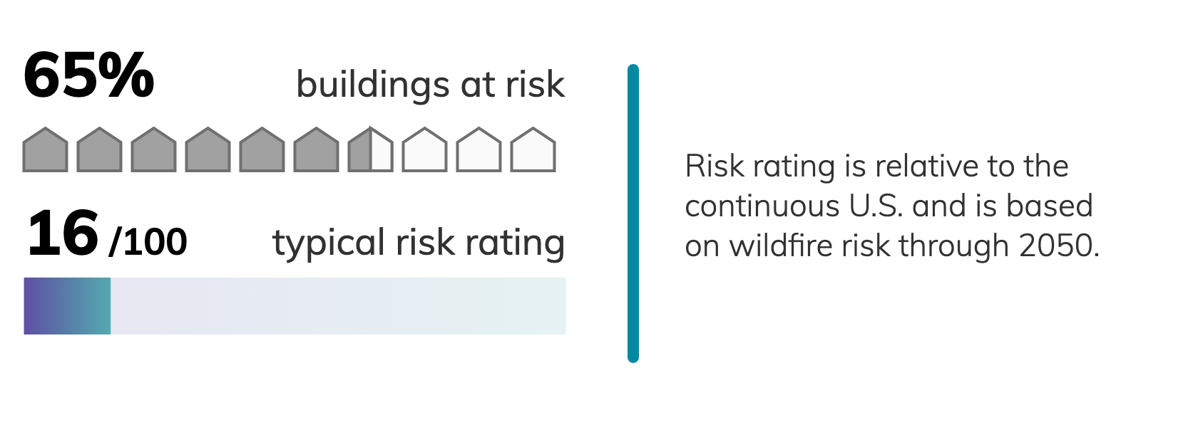 Of 113 census tracts in Bellevue, WA, there are 103 where more than a quarter of buildings have significant fire risk, and 84 where more than half of buildings have significant fire risk. Property owners can take steps to mitigate their risks from wildfires.Fire risk depends on proximity to vegation: densely developed urban areas have a much lower risk of burning than areas adjacent to wildland. Climate change increases risks from wildfire by creating hotter, drier conditions for fires to spread. ClimateCheck ratings of fire risk are based on projected weather conditions and U.S. Forest Service models simulating fire behavior.