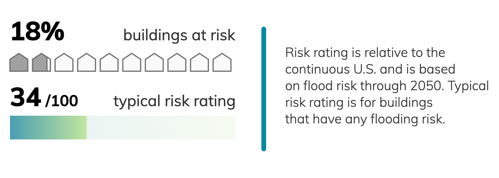 Buildings at risk in Tacoma average about a 33% chance of a flood about 1.2 feet deep over 30 years.